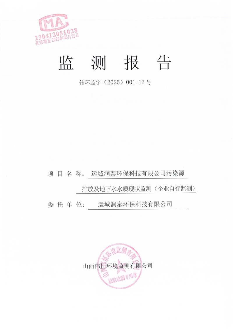 2025年潤(rùn)泰環(huán)保十月份自行監(jiān)測(cè)報(bào)告