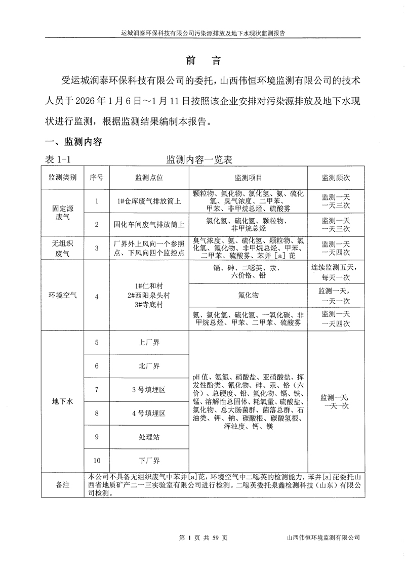 2026年潤泰環(huán)保一月份自行監(jiān)測報告