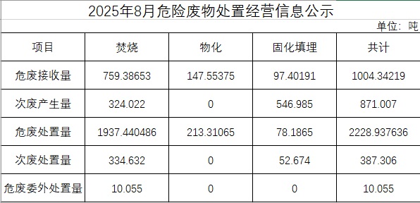 2025年八月危險廢物處置經營信息公示
