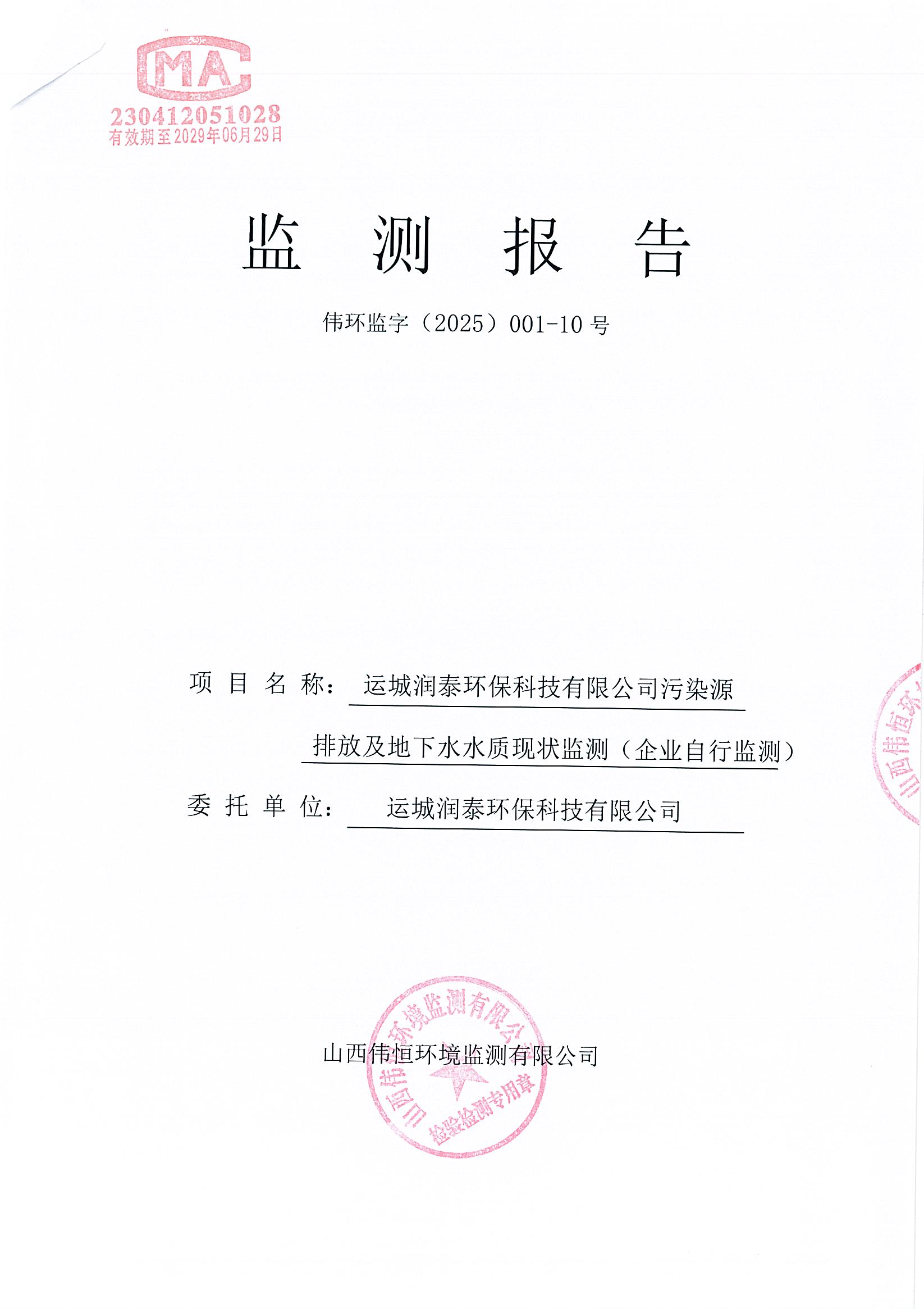 2025年潤泰環(huán)保十月份自行監(jiān)測報告