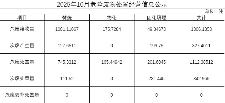 2025年10月危險廢物處置經營信息公示