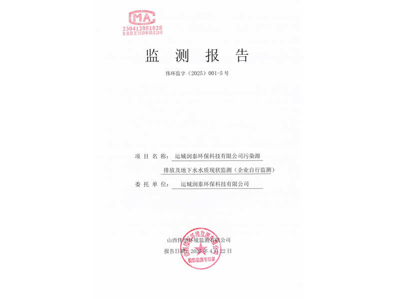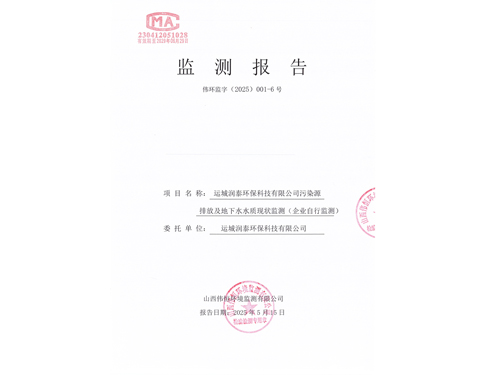 2025年潤泰環(huán)保四月份自行監(jiān)測報(bào)告