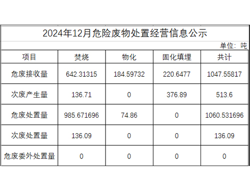 12月危險(xiǎn)廢物處置經(jīng)營(yíng)信息公示