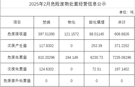 2025年二月危險(xiǎn)廢物處置經(jīng)營(yíng)信息公示