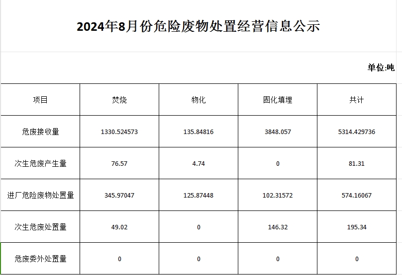 8月危險(xiǎn)廢物處置經(jīng)營(yíng)信息公示
