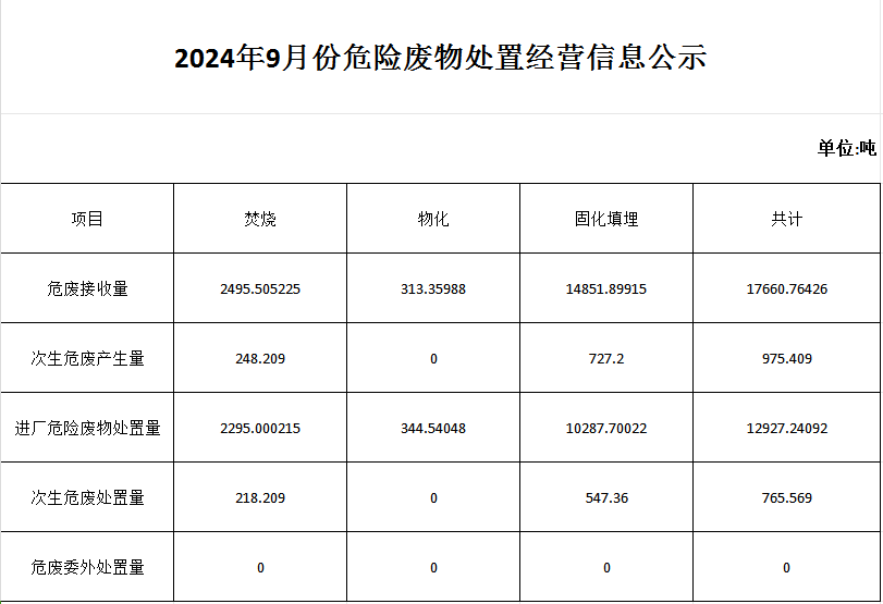2024年9月份危險(xiǎn)廢物處置經(jīng)營(yíng)信息公示