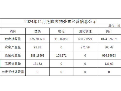 2024年11月危險(xiǎn)廢物處置經(jīng)營(yíng)信息公示